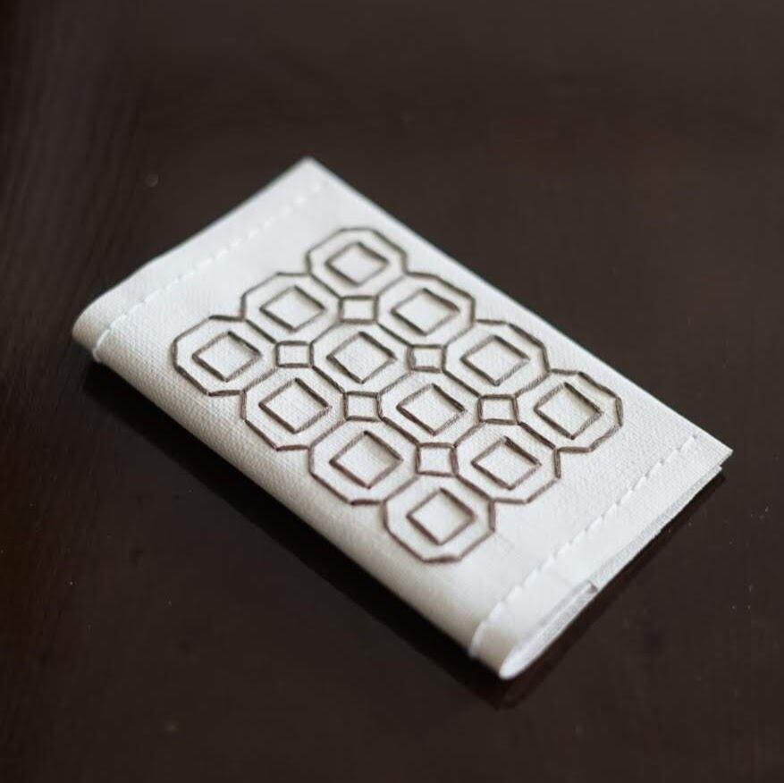 シックな刺繍をほどこした名刺やショップカードのケースです。