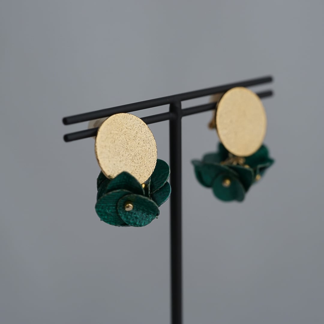 クリスマスリースやグリーンブーケのような雰囲気の耳飾りに仕立てました。